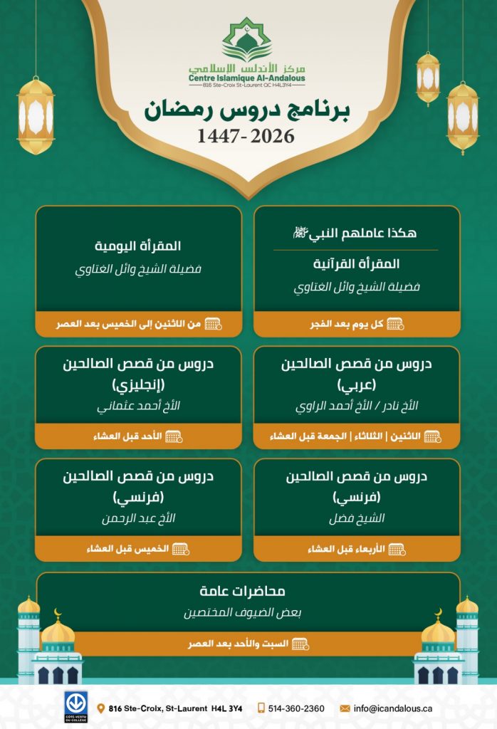 © Al-Andalous Islamic Center (managed by Association des Sciences Islamiques au Canada), 2012-2022. All Rights Reserved.
